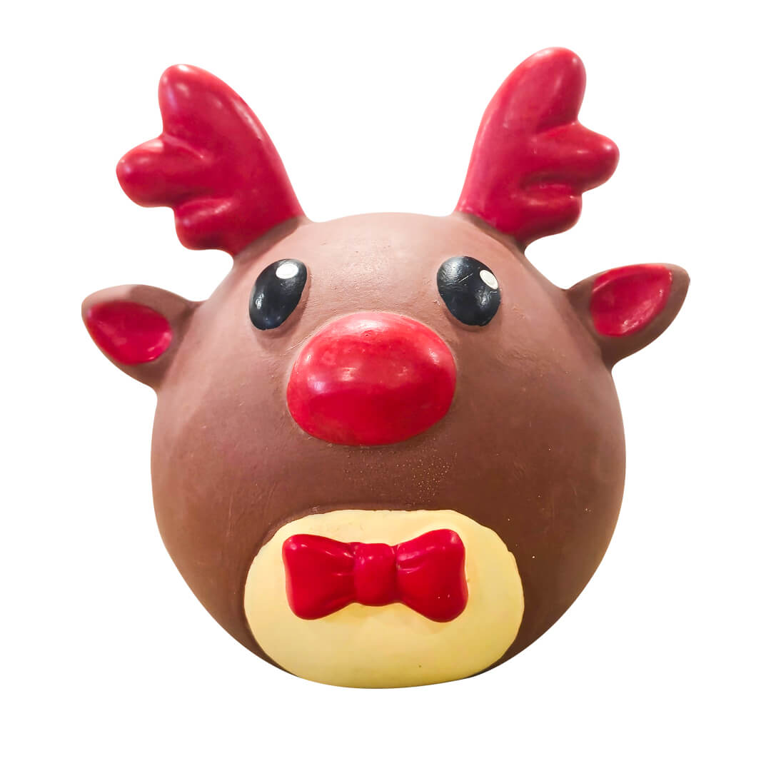 Apportez une touche festive aux jeux de votre chien avec cette balle en latex en forme de renne de Noël. Amusante et légère, elle émet un petit bruit lorsqu’on la presse, ce qui stimule la curiosité et le jeu.