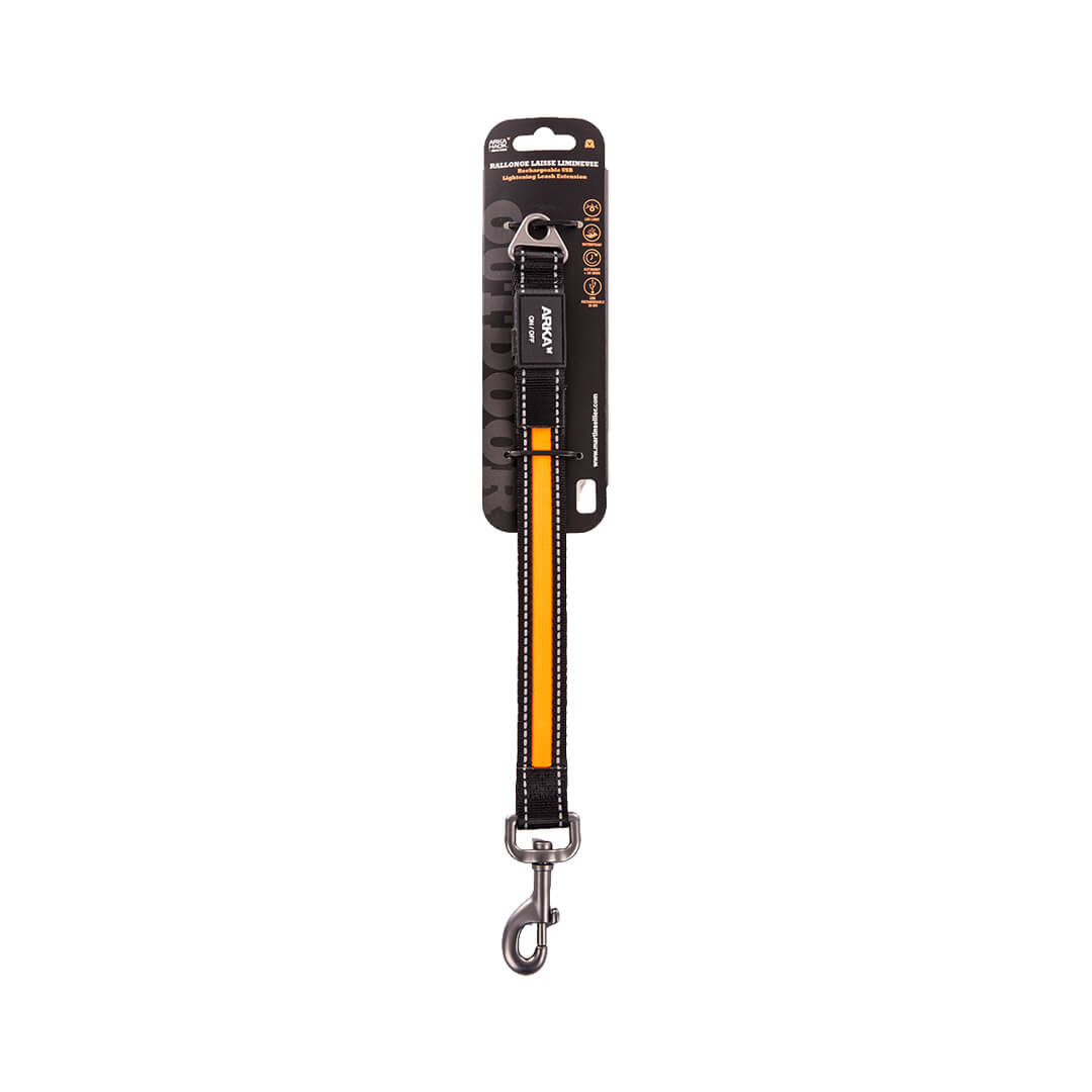 La laisse rallonge lumineuse en nylon USB orange largeur 2,5 cm est conçue pour offrir une visibilité renforcée lors des balades nocturnes avec votre chien. Son éclairage LED puissant et ses éléments réfléchissants assurent une excellente détection jusqu’à 300 m et améliorent la sécurité en extérieur.