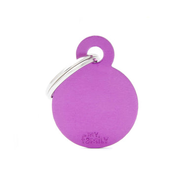 La médaille Basic Cercle Petit Violet en aluminium de MyFamily associe simplicité, légèreté et robustesse. Fabriquée artisanalement en Italie, elle est conçue pour assurer une identification fiable de votre compagnon, tout en ajoutant une touche élégante et originale à son collier.