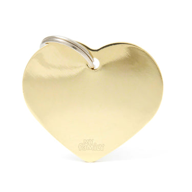 La médaille Basic Cœur Grand en laiton doré de MyFamily incarne la simplicité élégante et la robustesse. Fabriquée artisanalement en Italie, elle combine solidité, design raffiné et praticité pour identifier votre compagnon avec style et fiabilité.