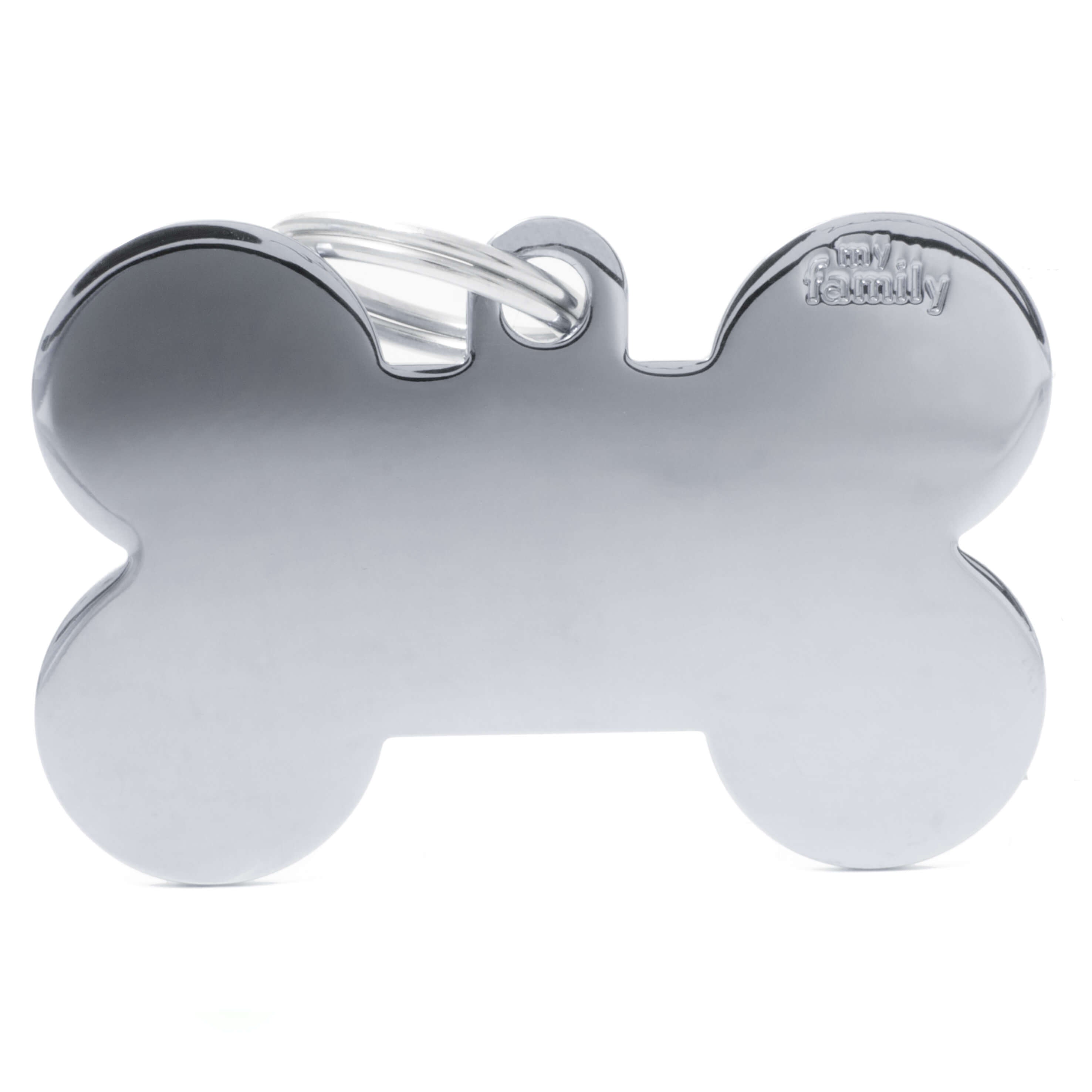 La médaille Basic Os XL en laiton chromé de MyFamily associe robustesse, élégance et qualité. Conçue artisanalement en Italie, elle est spécialement pensée pour les chiens de grande taille, garantissant confort, sécurité et style au quotidien.