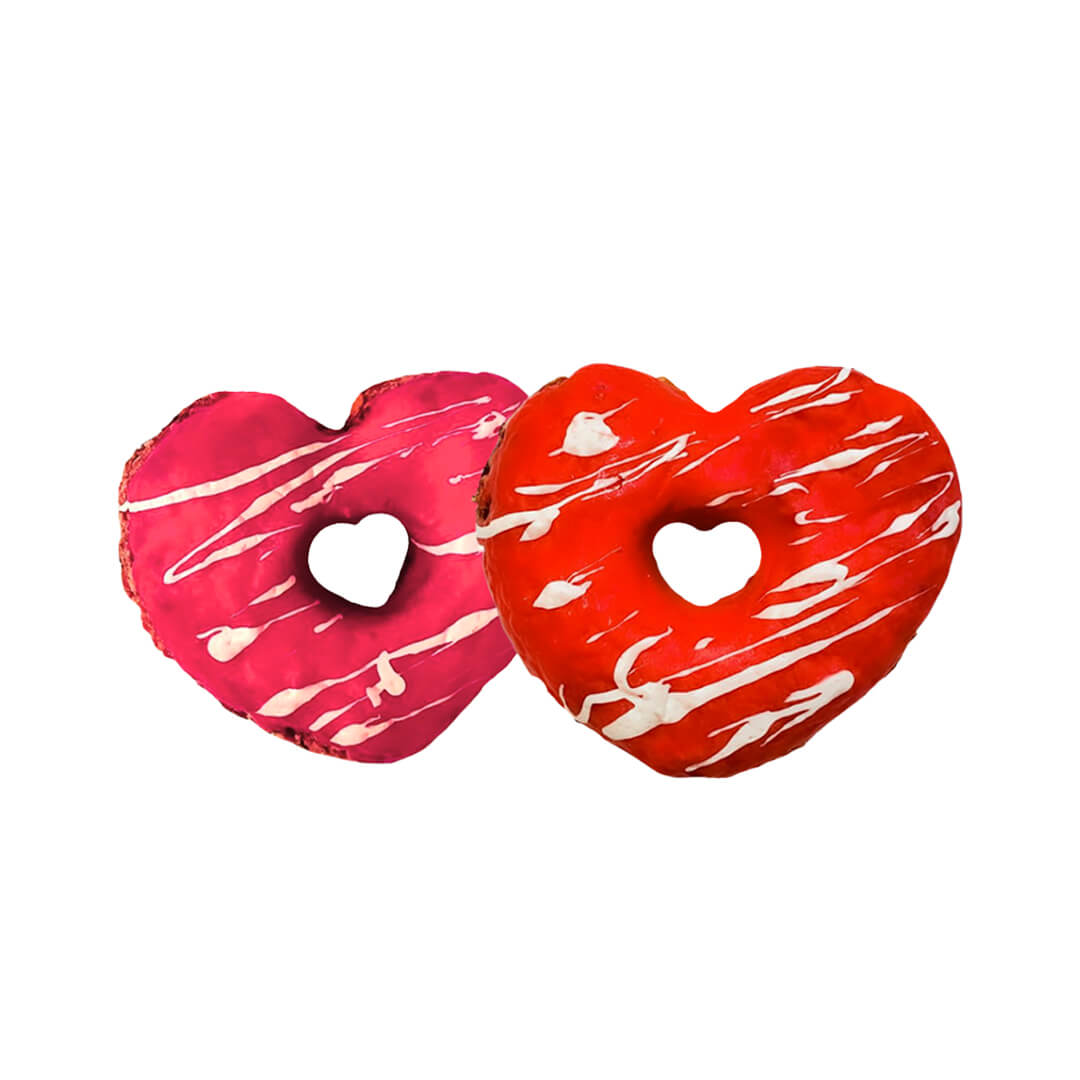 Chaque coffret contient deux beignets amoureux, fabriqués à partir de viande de dinde fraîchement préparée et glacés avec un glaçage au yaourt rose et rouge. Une attention parfaite pour célébrer l’amour que vous portez à votre compagnon.