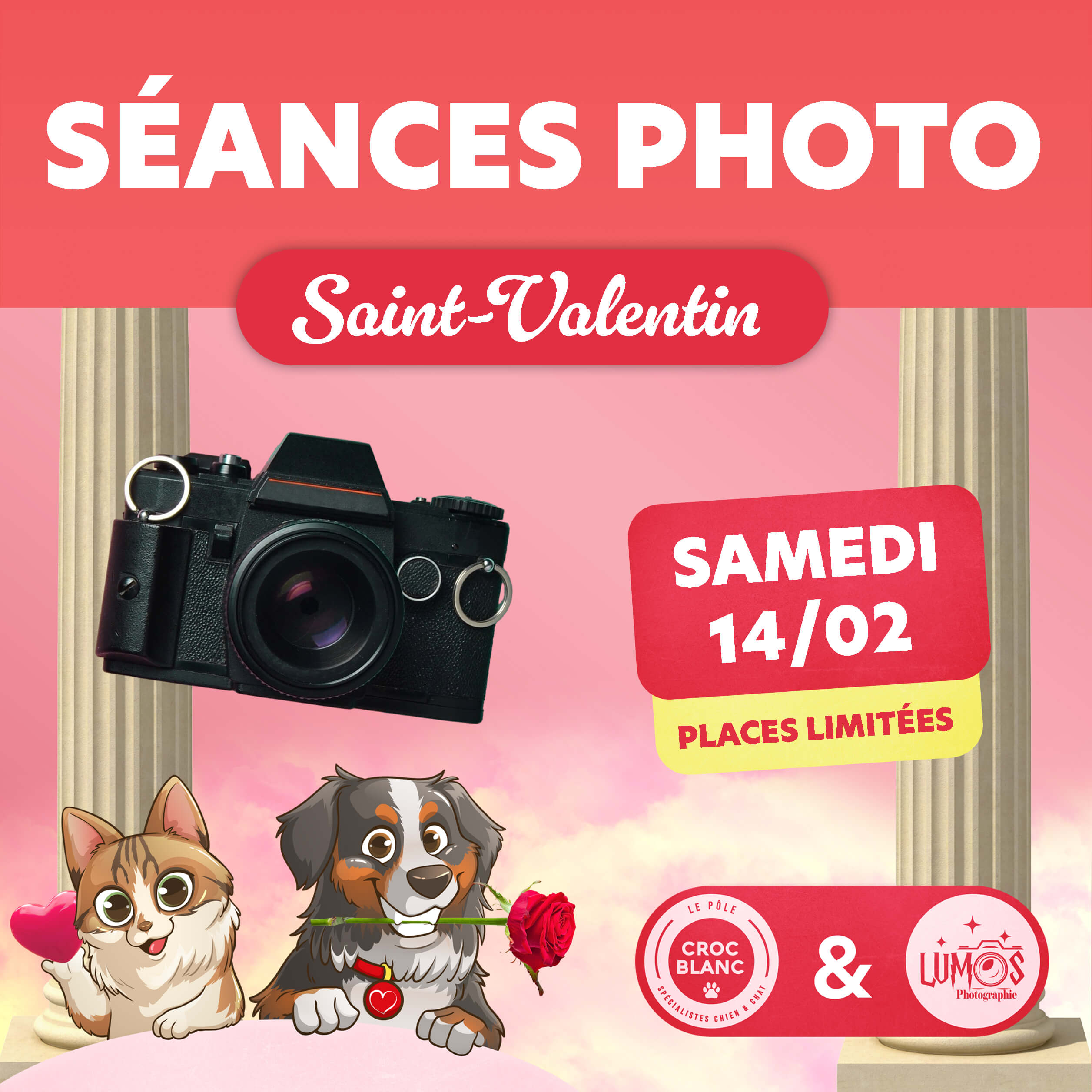 Les séances photo auront lieu l’après-midi, de 14h à 18h20, le 14 février, au Pôle Croc Blanc.