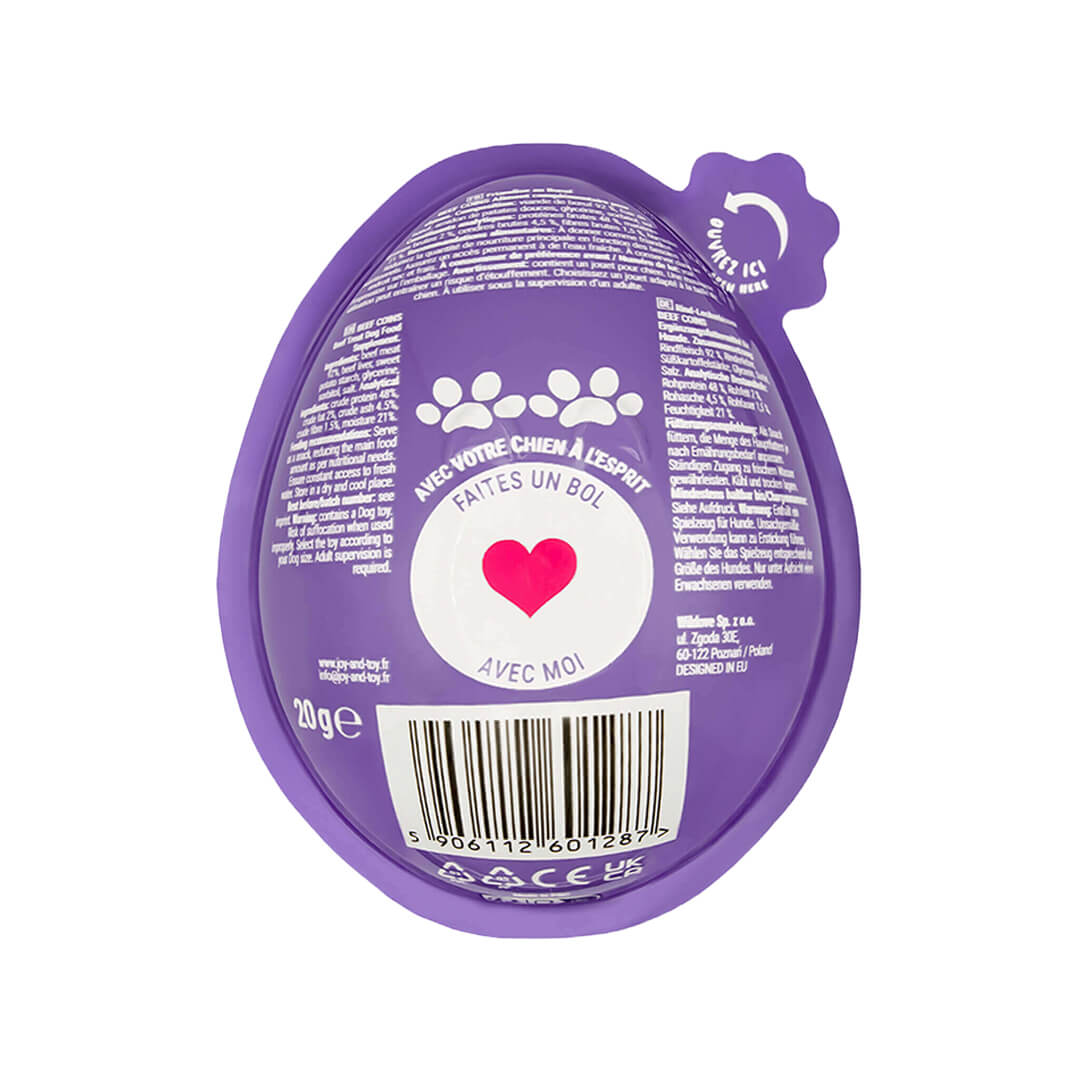 • Concept 2 en 1 : friandise au boeuf + jouet surprise