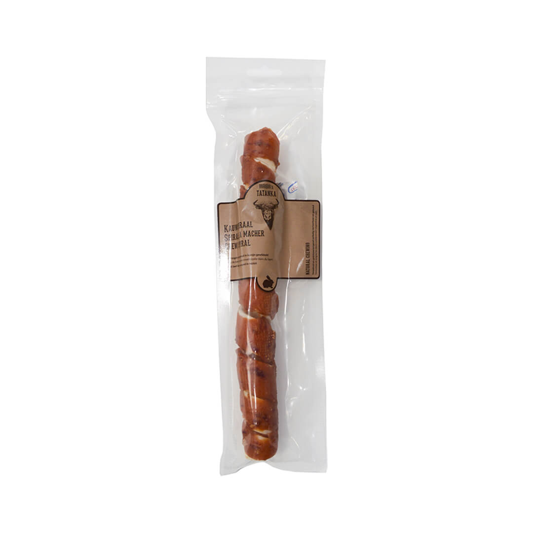 La spirale à mâcher Tatanka par Habas est une friandise naturelle en forme de spirale, conçue pour satisfaire les besoins de mastication des chiens. Composée de peau de boeuf séchée entourée de viande de lapin, elle offre une saveur douce et très appréciée tout en contribuant à l’hygiène bucco-dentaire de votre chien.